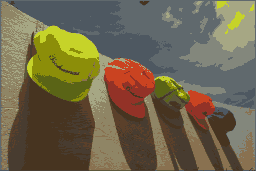 Using it sounds simple: convert each color from sRGB to CIELAB, run your median cut, receive a palette in CIELAB, and map each pixel to a palette color. Too bad it doesn’t help.